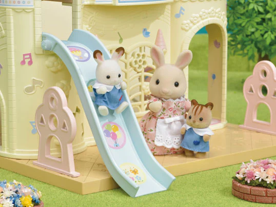 Welcome to the Baby Castle Nursery, the most fun place in Sylvania to start learning your ABCs! This cute nursery school building has been designed in the shape of a castle and features colourful decorations and playground equipment like a slide, swing and seesaw.