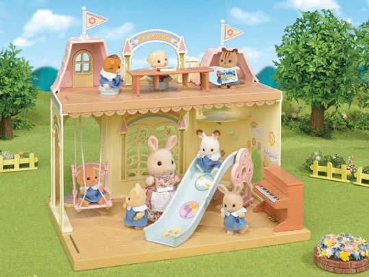 Welcome to the Baby Castle Nursery, the most fun place in Sylvania to start learning your ABCs! This cute nursery school building has been designed in the shape of a castle and features colourful decorations and playground equipment like a slide, swing and seesaw. The reversible floor panel can be adjusted to change the internal/external floor space of the building, and when you connect the Baby Castle Playground your castle nursery will become even more magnificent!