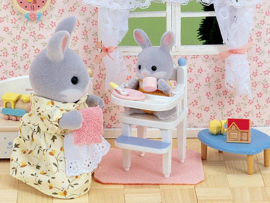 The perfect place for your Sylvanian babies to sit with the rest of the family at meal time. The tray of the chair lifts off so that you can place the baby comfortably into the seat.