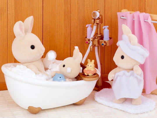 Featuring a luxurious roll-top bath, shower stand, shower curtain and lots of bath toys and accessories your Sylvanians will love decking out their bathroom with this detailed set.