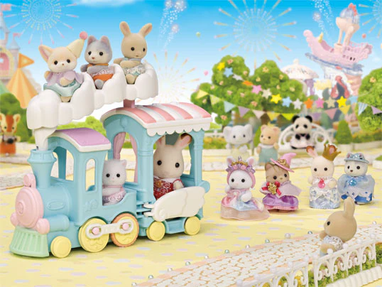 There’s no better way to get around the Baby Amusement Park than taking the train! This colourful steam engine has turning wheels and as you chug along the smoke from the funnel puffs up and down, making it a really fun ride for all the babies on board. No one is happier than fox baby sister Yulie Fennec, who’s sitting in the front seat of the train’s smoke cloud today enjoying the view and waving to everyone who they pass.